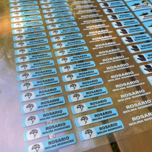 • 14 etiquetas UV de 60 x 40 mm, ideales como rótulos (nombre, grado y colegio)